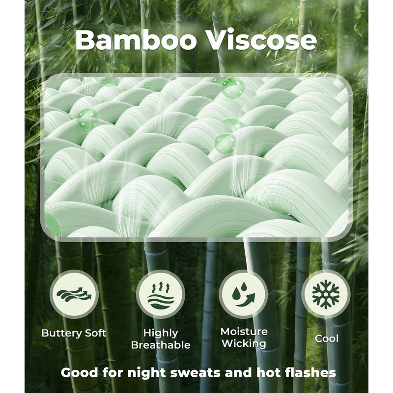• [Soft Material]: This gorgeous nightwear is made from 95% Viscose made from Bamboo and 5% spandex, which is silky smooth and soft. The fabric of pajamas is breathable and moisture wicking that is suit for lady who is suffering from night sweats and menopausal women. light weight and loose fitting with ease, easy to fit,provide you a soft,comfortable and cool night.