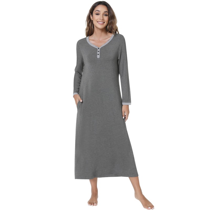 - {Long Sleeve Design}: The nightgown features a classic henley neck and button design, making you more elegant and charming. The nightshirt features practical side pockets, combining convenience with elegance.Long sleeve nightshirt keeps you warm all day. Perfect for lounge dress, sleeping nightshirt.