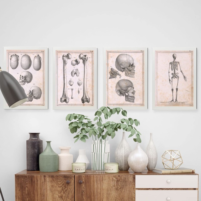 Nacnic Set of 4 Anatomy of body bones and Head. Aesthetic Wall Art Prints for...