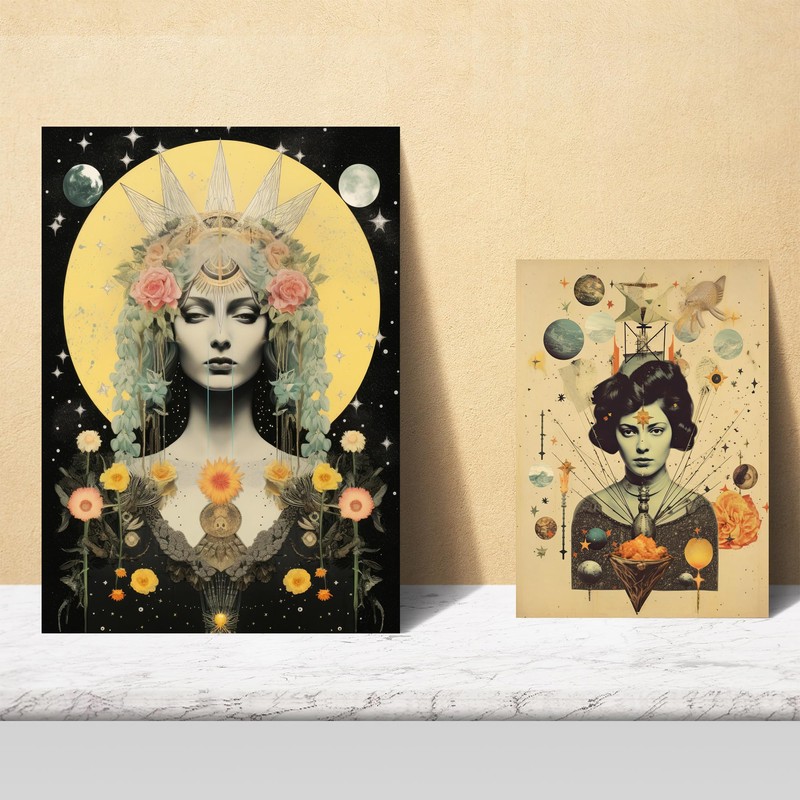 Nacnic Set of 6 Posters Surreal Collage in Mystical Esoteric Style Black Beige Design Illustrations to Decorate the Walls of Your Home. Rooms A3 & A4 Frameless