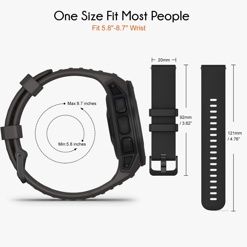 - 【Compatible】 Replacement for Garmin Vivoactive 3 / Vivoactive 3 music / Vivoactive 5 / Forerunner 245 / Forerunner 245 music / Forerunner 55 / Forerunner 645 / Vivomove / Vivomove HR sport / Vivomove 3 / Venu / Venu SQ,Compatible with Samsung Galaxy Watch 6 / Galaxy Watch 42mm . Other many Smart Watches with standard 20mm lug width. Please confirm your watch model before purchasing.(Watch is NOT included)