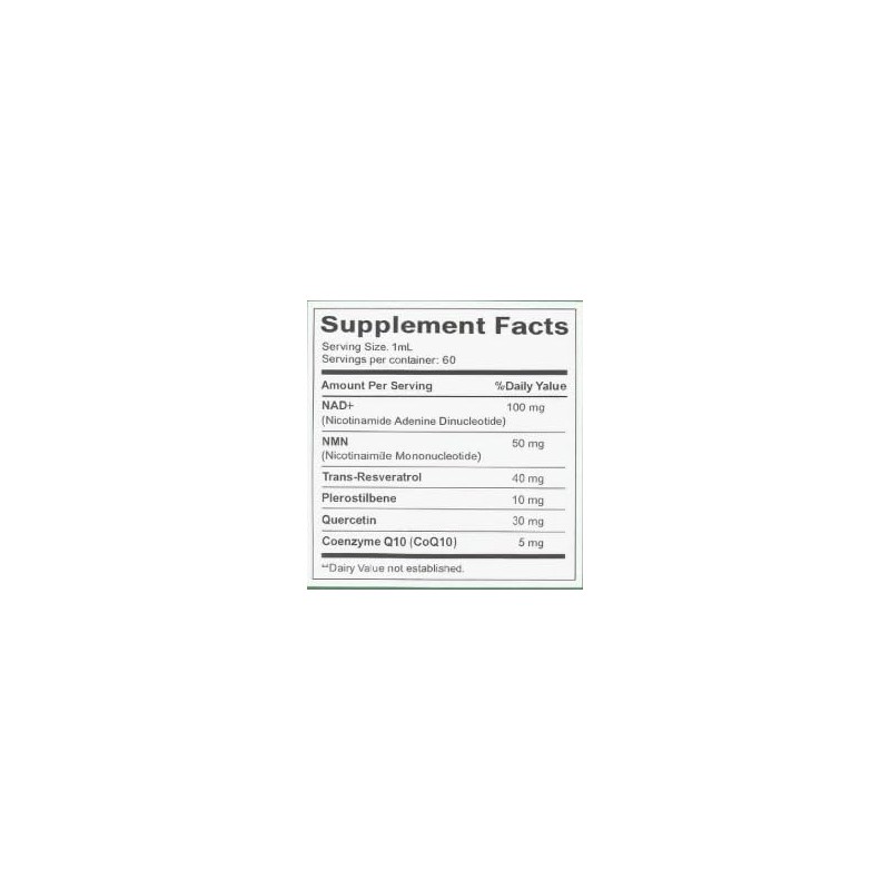 NAD+ Liquid Supplement, NAD Resveratrol Supplement for Women & Men, Nicotinamide Roboside with CoQ10, NMN, Quercetin for Anti-Aging, Brain, Cellular Energy, Health 2 Fl Oz