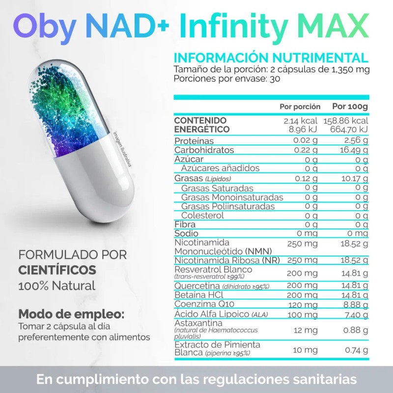 🌟 ⭐ Nad+ Max Con Nmn Y Nr Nicotinamida Ribosa, Resveratrol, Quercetina, Coenzima Q10, Ala, Astaxantina Y Más | Fórmula Premium Antioxidantes | Oby Suplementos Alimenticios Para Mujeres Y Hombres | 60 Caps ⭐ 🌟