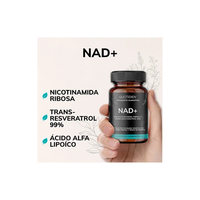 El protagonista es el NAD+, una coenzima esencial que estimula la energía celular, la reparación del ADN y el buen funcionamiento de tus mitocondrias 🔋🧠. ¡Es el secreto de una vitalidad duradera!