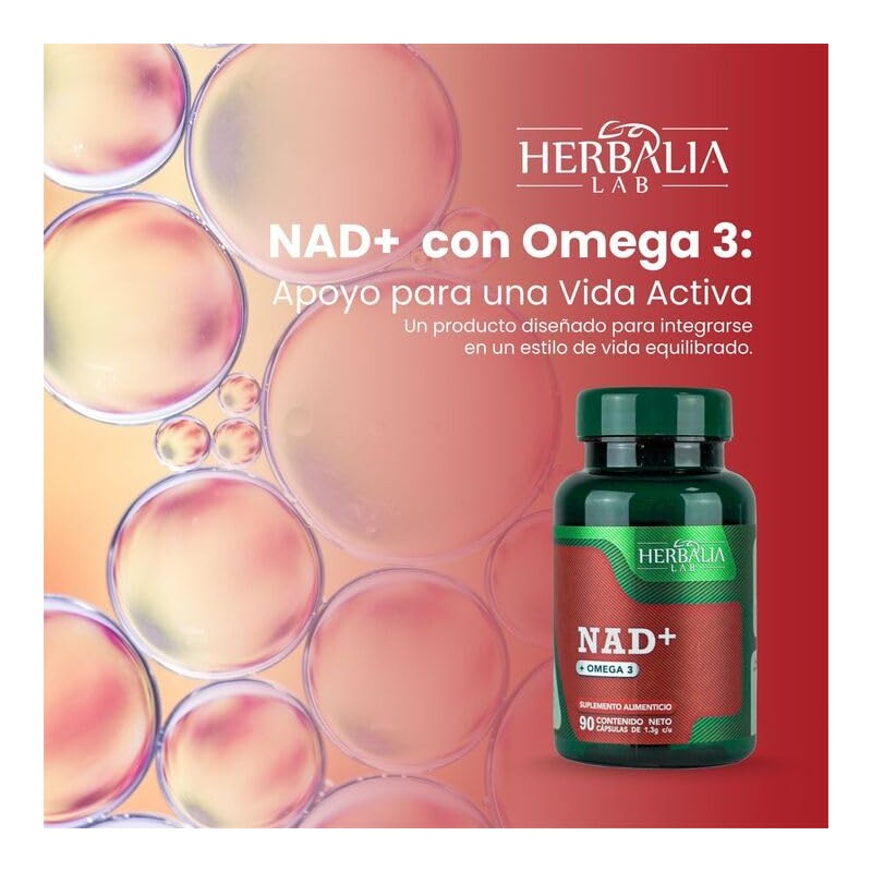 NAD Omega 3 - NAD Puro 500mg - Coenzima Premium de Alta Biodisponibilidad - Frmula Avanzada - Longevity Support - 90 Cpsulas Herbalia Lab