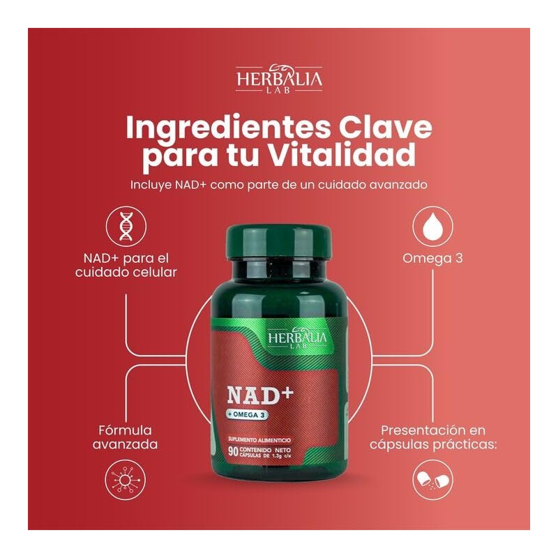 NAD Omega 3 - NAD Puro 500mg - Coenzima Premium de Alta Biodisponibilidad - Frmula Avanzada - Longevity Support - 90 Cpsulas Herbalia Lab