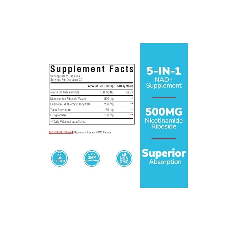 NAD Resveratrol Supplement with Niacinamide, Quercetin, L-Tryptophan – NMN Al...