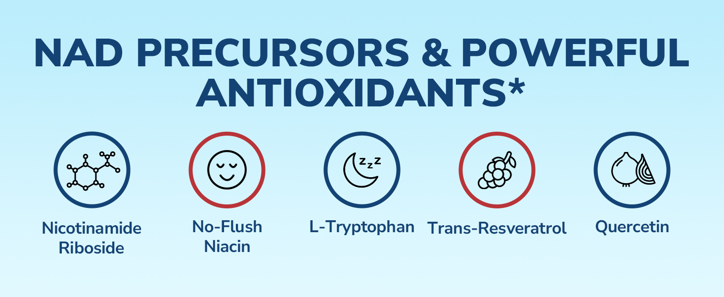 • Cellular Health to Mental Clarity & Crash-Free Energy*: The specially-added highly bioavailable trans-resveratrol, a powerful antioxidant, protects brain cells from oxidative damage to sharpen your mind.* The quercetin plays a key role in cellular energy production and helps you pave the way to overall energy increase.* Boost the natural energy of NAD with no crash and feel more in control in work and life.*
