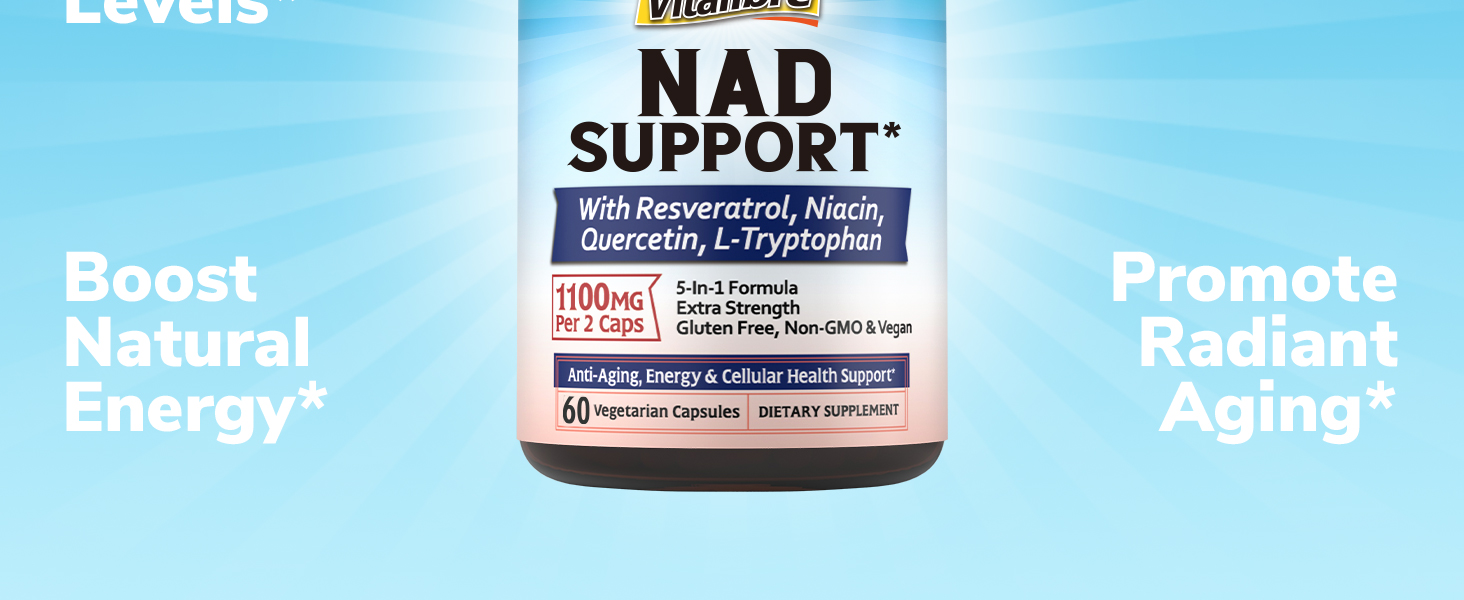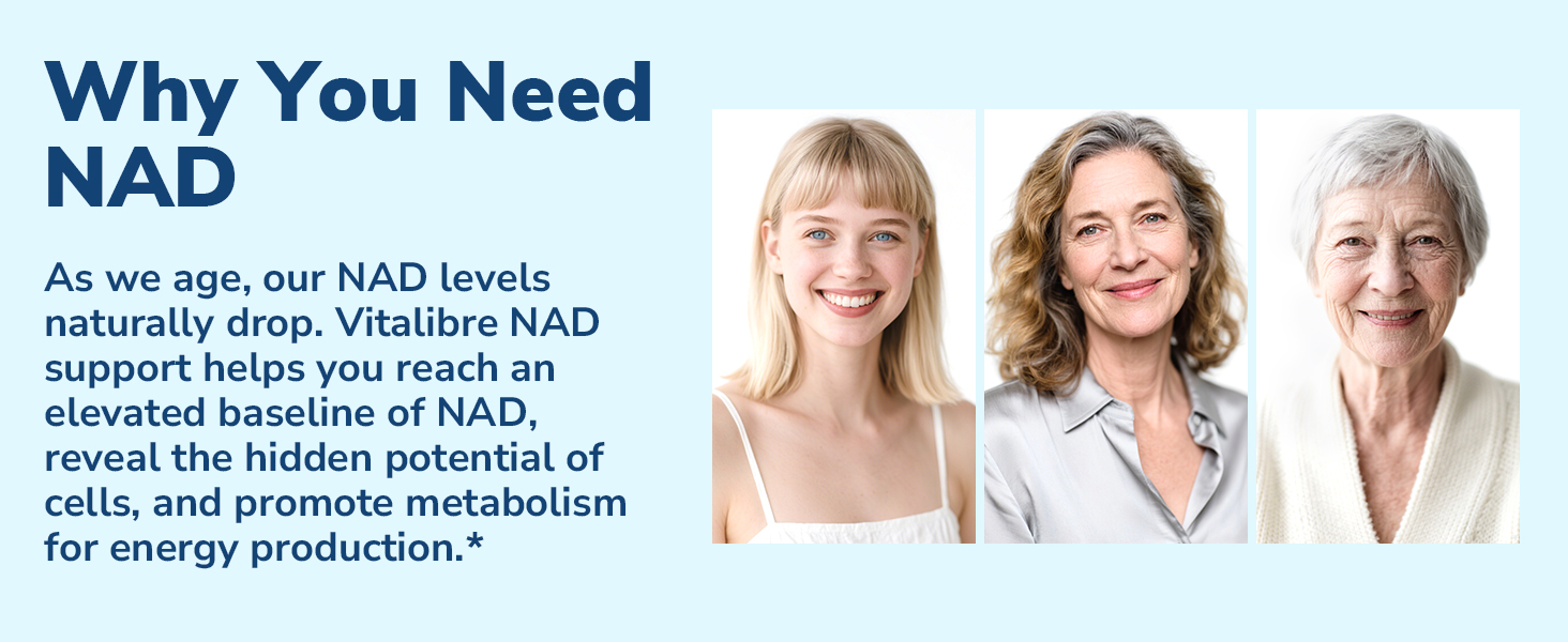 • The Powerful NAD Supplement*: As we age, our NAD levels naturally drop, resulting in brain fog, reduced cellular energy, and a general loss of vitality. Vitalibre NAD Support boasts a unique blend of antioxidants and NAD precursors to help you reach an elevated baseline of NAD, reveal the hidden potential of cells, feel energized in both body and spirit, and support healthy aging from within.*