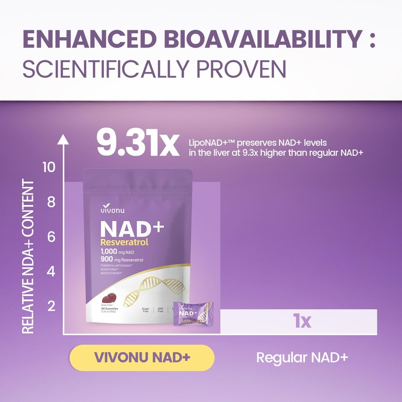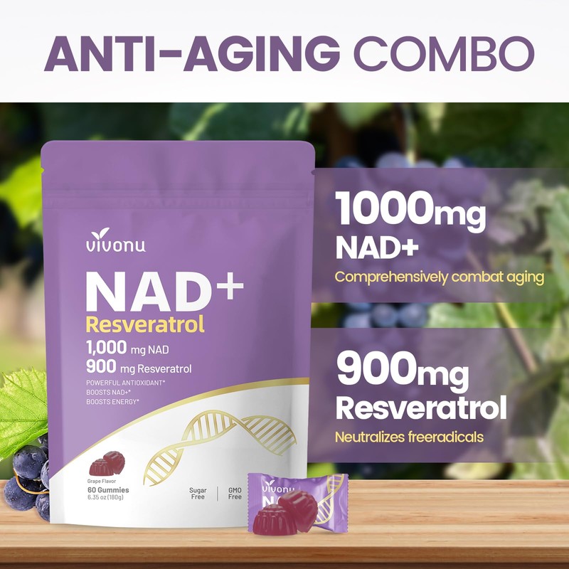NAD+ levels naturally decline with age. These gummies combine NAD+ precursors with Resveratrol for a powerful synergistic effect—helping fight fatigue, support healthy aging, and promote optimal cellular function. An ideal supplement for active individuals seeking antioxidant and longevity support.
