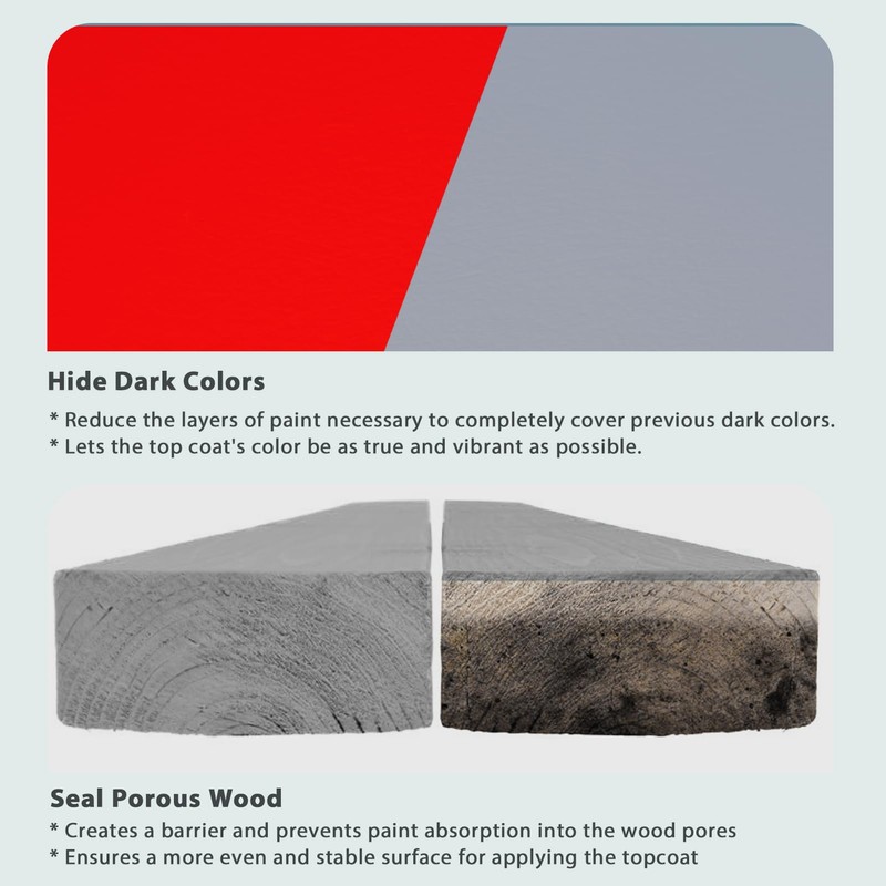 - Specially formulated to seal and create a smoother, more even finish, ensures superior adhesion between the top coat and the substrate, allowing regular paint to be used on otherwise impossible surfaces,increase toppaint’s durability.