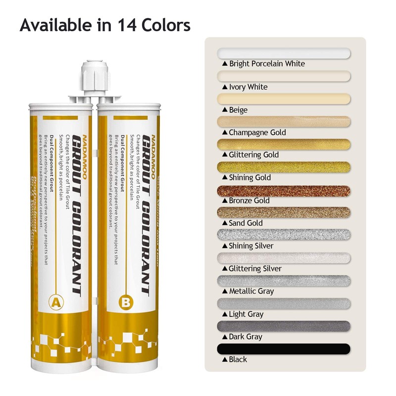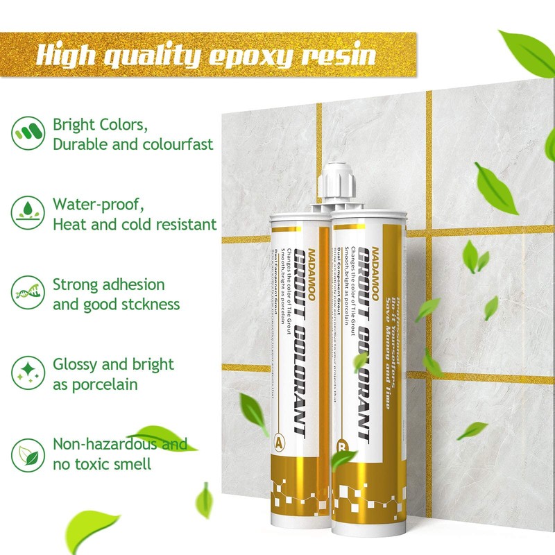 NADAMOO Epoxy Grout Glittering Gold, Dual Tubes Waterproof Tile Grout 19oz 400ml, Restore Tile Grout Line for Shower Bathroom Wet Room Kitchen, Caulk Gun NOT Included
