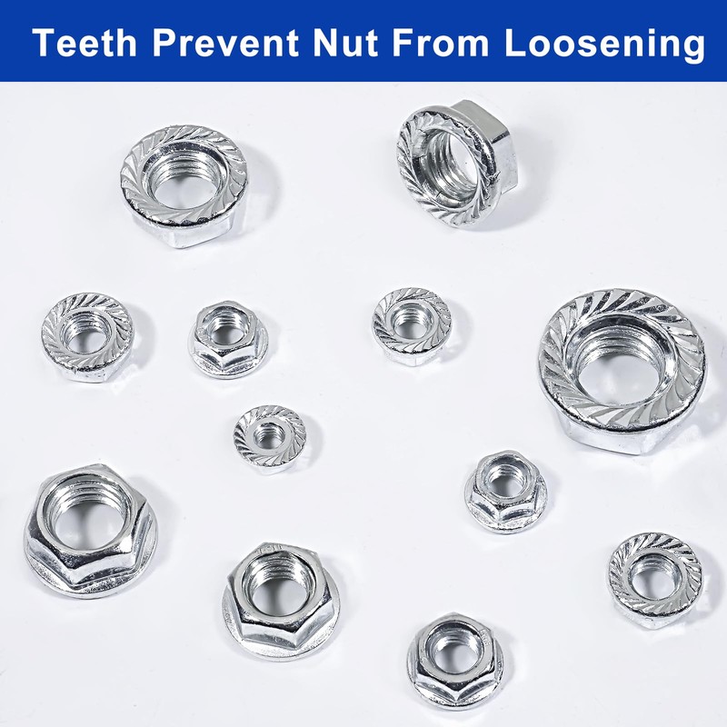- 【Flange Ensures Locking】The flange design increases resistance between surfaces, ensuring higher tightening strength, avoiding nut vibration and increasing nut grip.
