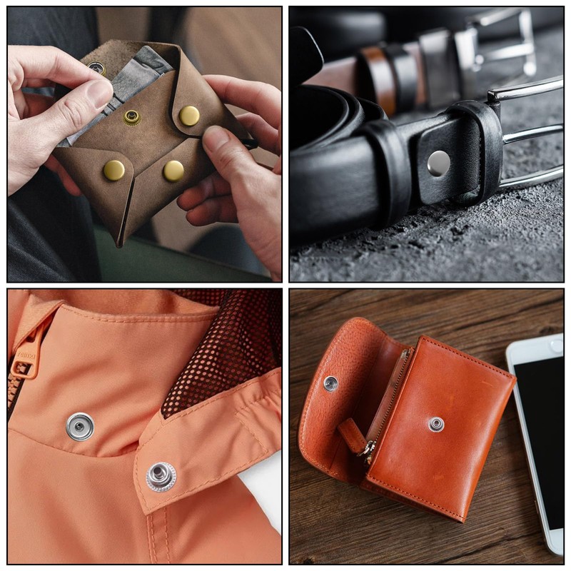 - 【Wider Application】This pop buttons snap kit can be used for DIY crafts or making shirts, jackets, overalls, handmade bags,, shoes, hats, belts, cotton coats, jeans and other clothes. As well as making leather crafts, fixing awnings, adding fasteners to curtains, etc.