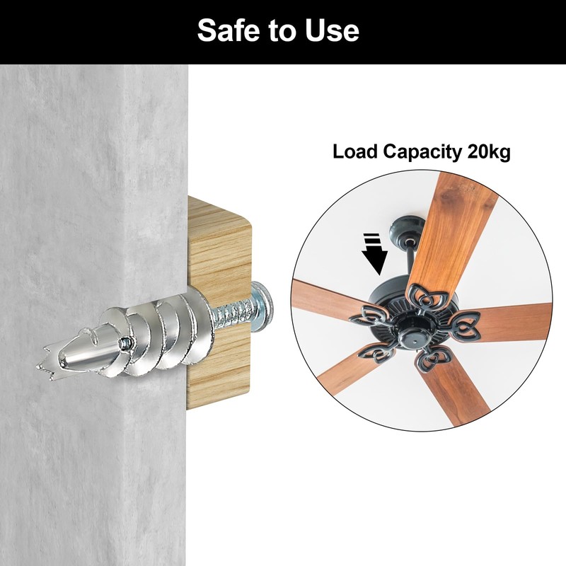 - Robustness: self-drilling plasterboard dowels are made of high-quality zinc alloy, rust-proof, corrosion-resistant, not easy to deform, long service life. Stronger than plastic dowels. Suitable for hanging heavier items such as fans.