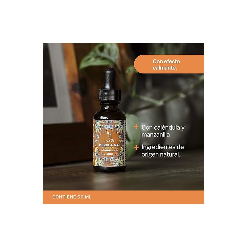 - 100% DE INGREDIENTES DE ORIGEN NATURAL: aceites vegetales prensados de chabacano, rosa mosqueta, jojoba, arroz, chía, argán y macadamia; escualano, hemiescualano y vitamina E; extractos de caléndula y manzanilla elaborados en nuestro laboratorio; sin aceites esenciales ni fragancias para evitar cualquier posibilidad de irritación