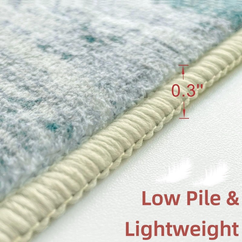 - 【Ultra-Soft Fiber】: This room rug is crafted from high-quality synthetic wool, offering the softness of real cashmere, providing your feet with an unparalleled comfort experience. With its low-pile design, you can place it in any area to enhance the aesthetics,such as in the hallway, kitchen, bathroom, bedroom, entryway, dorm, and won't catch on doors. It boasts excellent durability and shedding minimally, making it ideal for high-traffic areas.