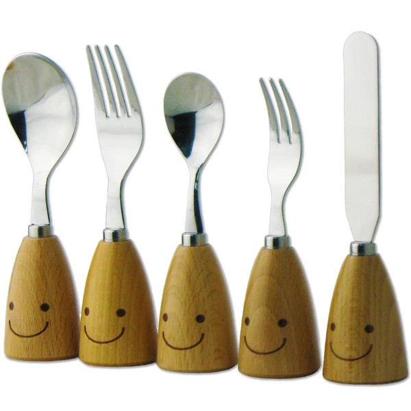 - Size: (Total Length) Butter Knife 6.0 inches (152 mm) / Stand Spoon L 5.4 inches (138 mm) / Stand Fork L 5.5 inches (139 mm) / Stand Spoon S 5.1 inches (130 mm) / Stand Fork S 5.1 inches (129 mm) / Wood Base (Common) Diameter 37 x Height 5555555555.0 inches (3 mm)