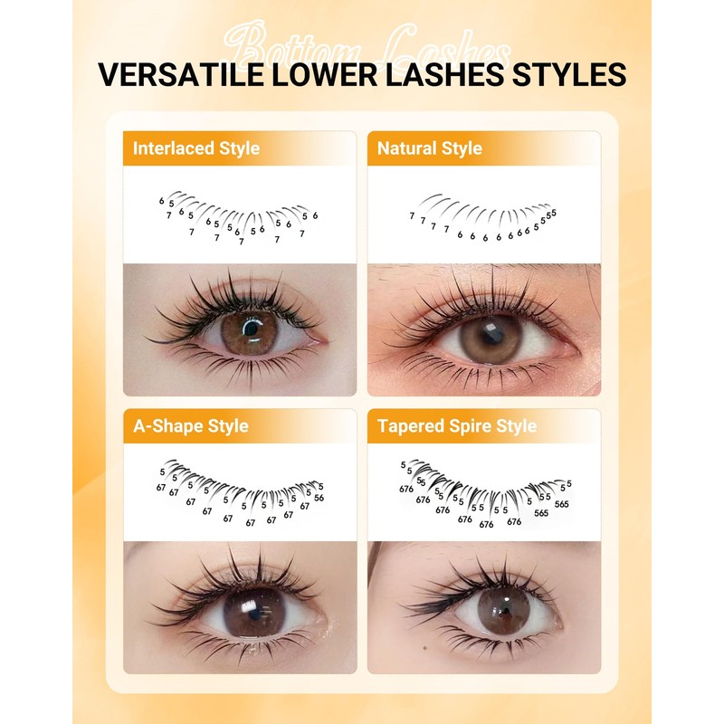 - SLIGHT SPLIT TIPS: The flat shape lash extensions for lower eyelashes have unique split tips of their tail, which makes eyelashes look much dense and natural, improves the softness. The density of the flat ellipse lashes is approximately equal to that of two round Classic Lash extensions and 40% lighter