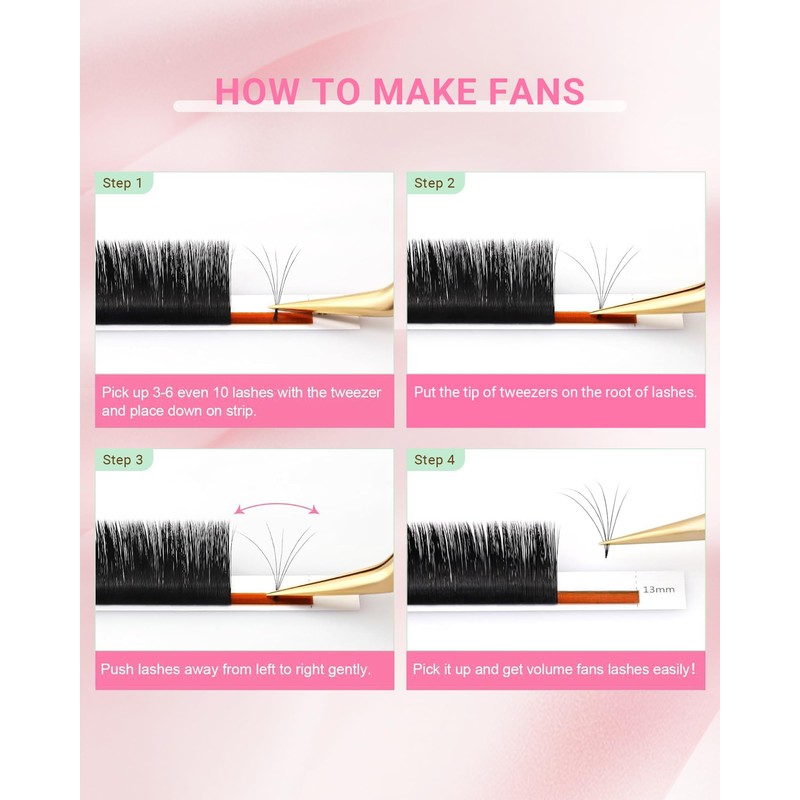 - EASY FAN EYELASH: Make 3D to 10D clusters while picking, blossom instantly. Don’t need any professional skills, very suitable for professional salon use, it can help lash artists save more time. Even you are a beginner, you can use the premade easy fans easily.