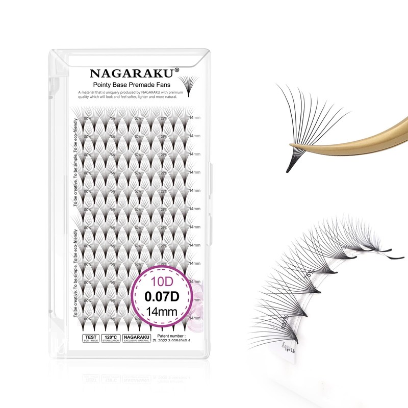 NAGARAKU Eyelash Extensions Premade Fans Eyelash Premade Volume Fan Eyelashes 120 Fans 10D 0.07D Curl 14 mm Sharp Narrow Stick Cluster Thin Tip Base Fluffy Russian Volume Fan