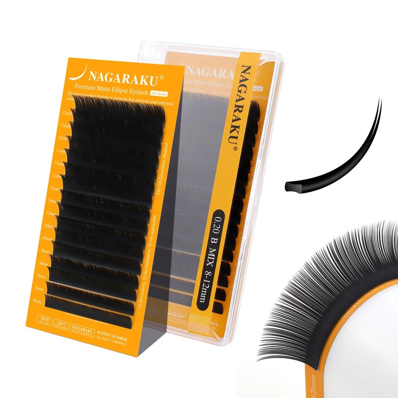 NAGARAKU Flache Ellipse Wimpernverlängerung 5. Generation Air Serie Einzelwimpern 1:1 Ultra Leichter Dünner Natürlicher Doppelte Spitzen Split Flat Eyelash Matt Schwarz 16 Reihen (0.20 B Curl 8-12mm)