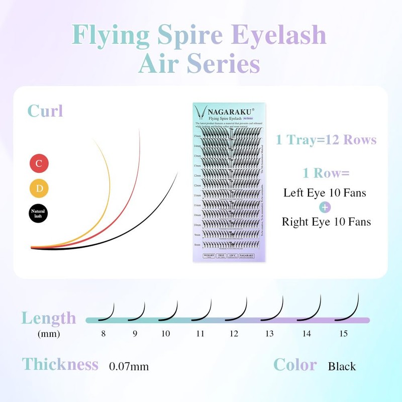 - High-Quality Materials: Crafted with NAGARAKU exclusive premium materials, these air series eyelash extensions are not only great for creating a show - stopping look but also built to last. Our premade lash are ultra light and graceful, just like a plume fluttering in the wind, ensuring long-lasting beauty without compromising comfort.