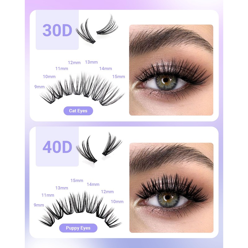 - Multiple Styles Depend on You: The individual cluster lashes are great for a natural look or glam look. You can create a customizable lash look with our individual lash clusters from different lengths and volume like natural style, volume style, mega volume style, cat eye style ect. The cluster lashes pack is versatile and can be used for a variety of occasions, be it a night out with friends, a special occasion, or even a day at work.