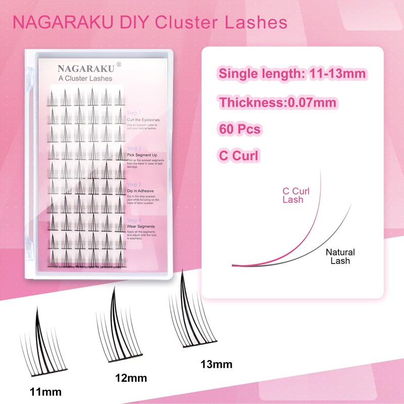 - đăPromise Of QualityăThe NAGARAKU DIY eyelash clusters are made by premium fiber. NAGARAKU checks each eyelash carefully before delivery to make sure you can have a perfect experience. If there is something wrong with the purchased product, please feel free to contact with us.