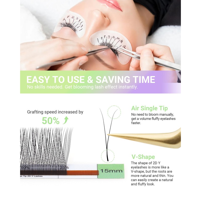 • SINGLE TIP 2D Y LASH: The Y-shape eyelash has 2D lash extensions bonded together which is very simple to create fans when grabbing with tweezers, no any skills needed. Get a 2D cluster instantly.