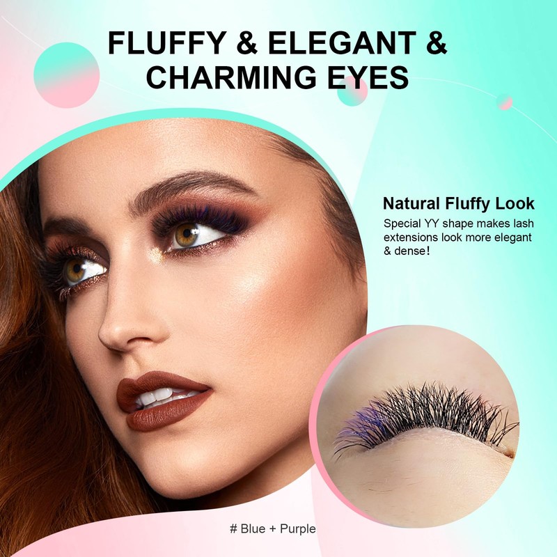 NAGARAKU YY 4D Eyelash Extensions Blue + Purple Color Y Lash 0.07mm D Curl Mi...
