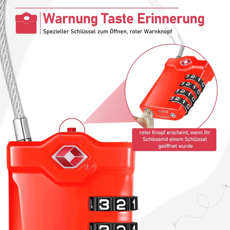 - 1. TSA LOCK WITH OPEN DISPLAY: NAGE lock for suitcases are approved by the TSA which allows airport security officers to open them without damage to your suitcase. In addition, a red indicator light at the top indicates if your suitcase has ever been opened.