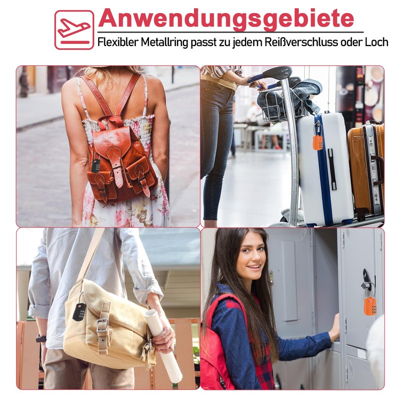 - 4.Wide Applications The cable lock combination lock features a flexible metal ring that fits into any hole, making it ideal for different applications. Perfect for securing travel suitcases and backpacks on the go, or use in the gym and at home. Use it on your backpack zipper, laptop bag, locker or toolbox for reliable protection.