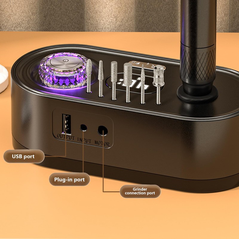 - Kompakter elektrischer Nagelfeiler: Der elektrische Nagelpolierer wird mit einer Aufbewahrung für Nagelbohrstifte und 6 Löchern zum Einsetzen von Nagelbohrern geliefert. Er spart nicht nur Platz auf dem Nageltisch, sondern ist auch bequemer für Sie beim Maniküremachen zu verwenden, was die Effizienz erheblich verbessern und die Arbeitsfläche aufgeräumter machen kann.