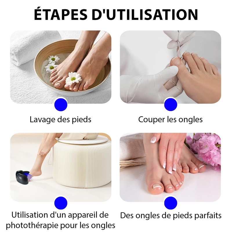 - Einfach zu bedienen: Der Nagellaser beseitigt komplizierte Verfahren und Unannehmlichkeiten während der Behandlung. Verabschieden Sie sich von mühsamen täglichen Behandlungen.