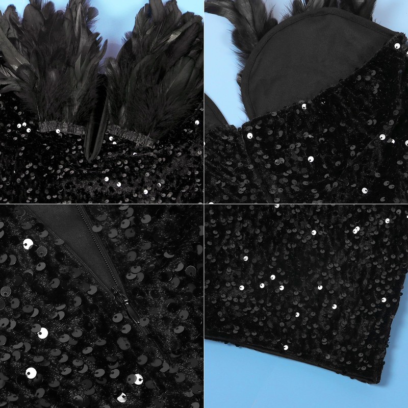 - Feather Dress Material:Women's dress is made of sparkling sequins and stretchy polyester, the breathable and skin friendly ,deep v neck with feather wrap hip short party dress and the texture is soft and comfortable.the shiny glamorous stylish design that will keep you looking your best all night long