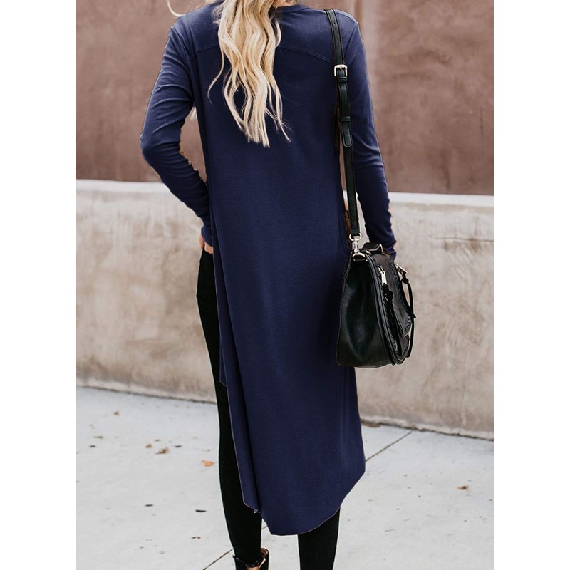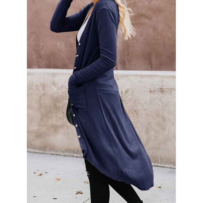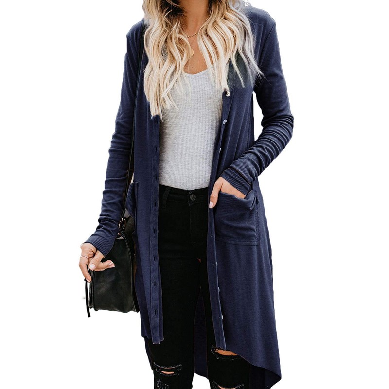 Naggoo Women's Long Cardigans Button Down High Low Solid Knit Loose Cardigans with Pockets Navy Blue