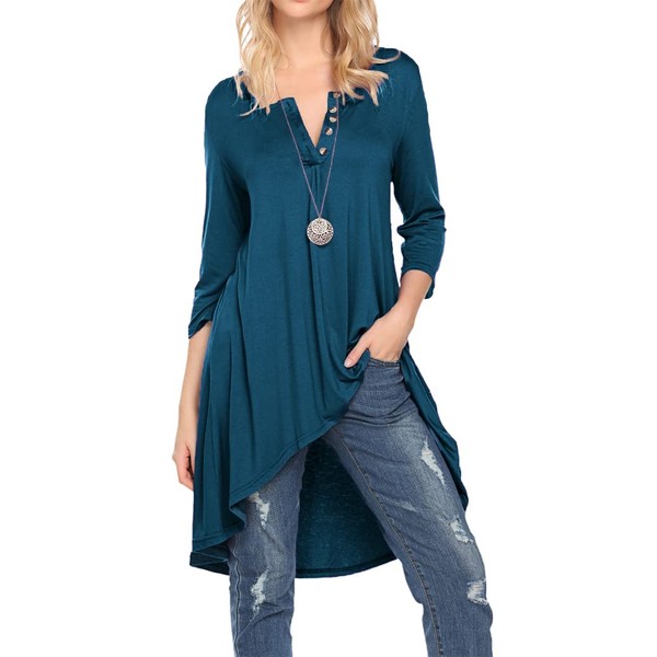 Naggoo Women Solid v neck Tunic for Leggings Swing Flare Henley Tops Teal
