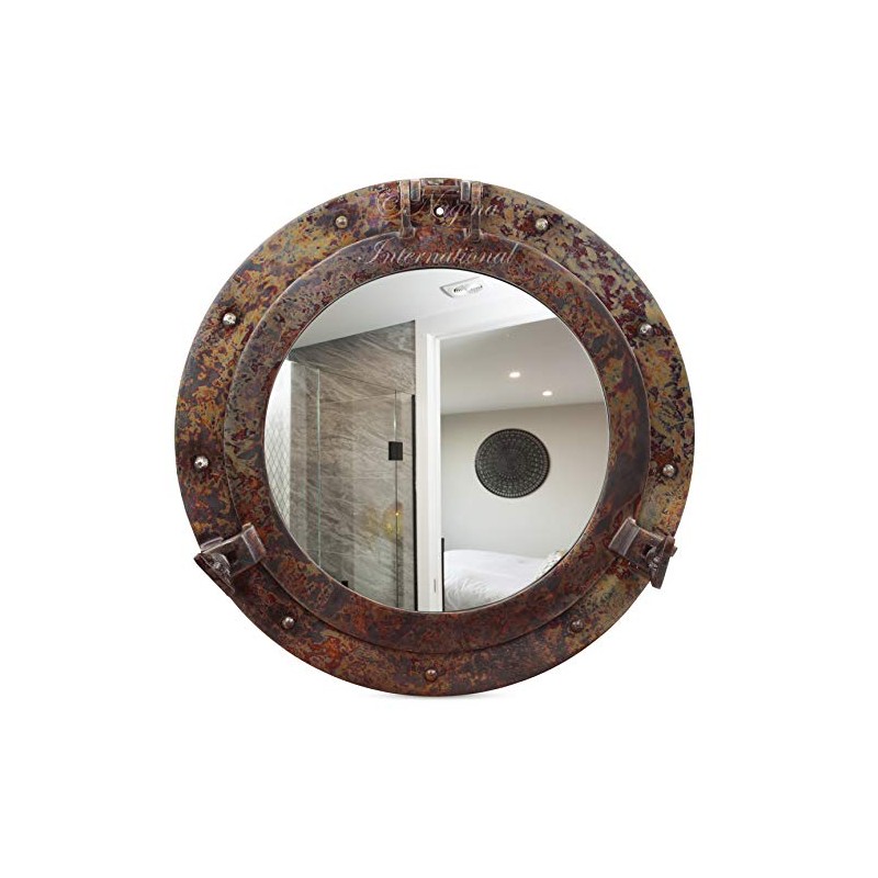 Nagina International Rustic Copper Shipwrecked Premium Nautical Porthole Mirror | Nautical Bathroom Mirrors (10 Inches, Aluminum Mirror)