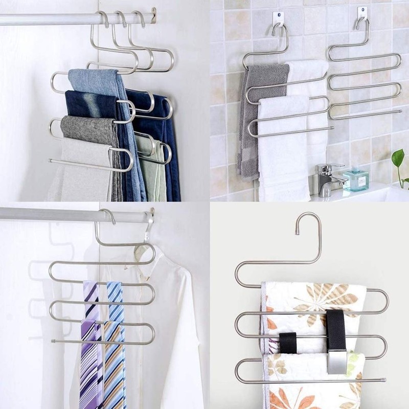 NAHANCO NHMLPH S-Shape Multilayer Metal Space Saving Pant/Scarf Hangers for Closet Organization (5 Layers) -3/Pack