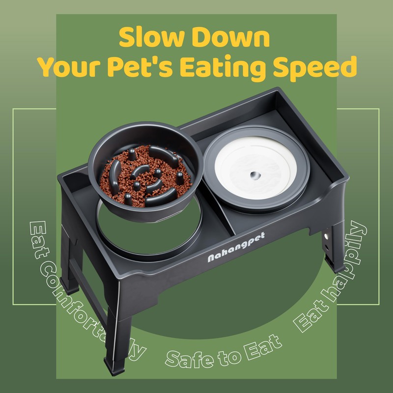 NAHANGPET 2-in-1 Elevated Dog Bowls, Mess Proof Slow Feeder Dog Bowl with No Spill Water Bowl, 4 Heights Adjustable, 2 Different Combinations, Raised Dog Bowl for Small Medium and Large Dogs(Grey)