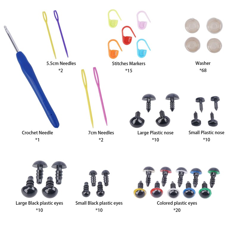 • Versatile accessory set: chenille yarn for crochet includes accessories such as plastic sewing needles, pins, colored eyes, black eyes and noses, so that you can quickly complete the production of toys or decorations without purchasing additional tools.