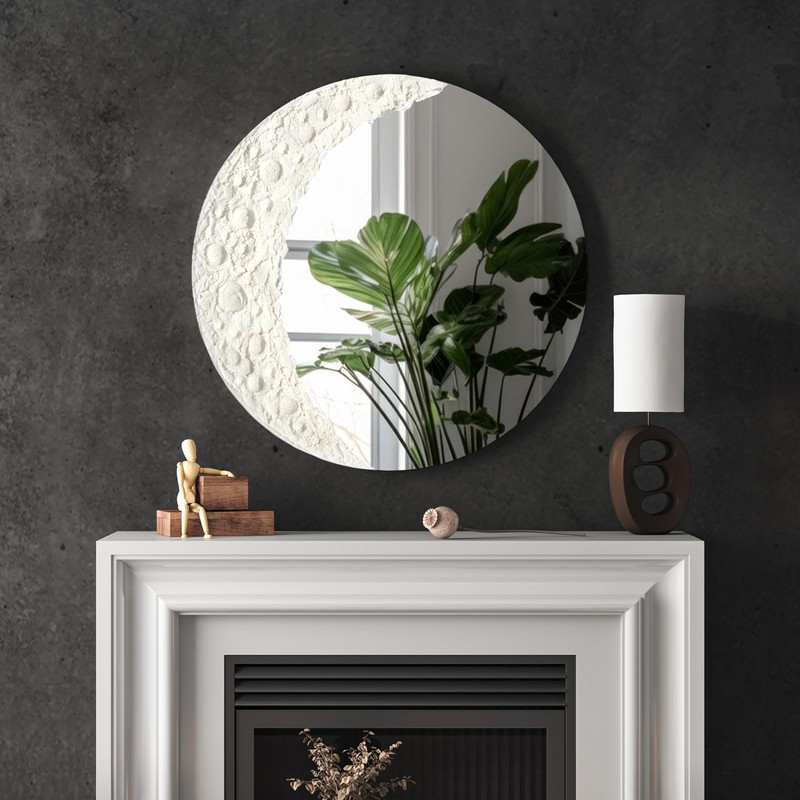 - MULTI-SCENE ADAPTATION, ENHANCE SPACE STYLE: Whether it's living room, bedroom, dressing table, dining room, aisle or desk, this round moon mirror can add a touch of elegance and personality to your space, and perfectly blend into various home styles.