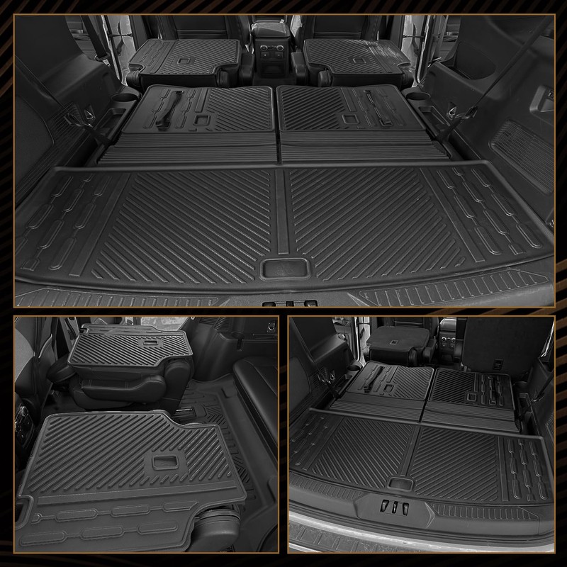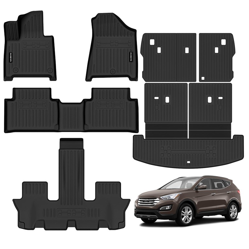 - [Customized for Hyundai Santa Fe 7 Passengers] The 3D for 2024 2025 2026 Hyundai Santa Fe floor liner full car mats including for Santa fe floor mats & trunk mat & Second Row Backrest Mats & Third row Backrest Mats, Made according to Santa Fe interior contours, Perfect fit, Give your car a new look