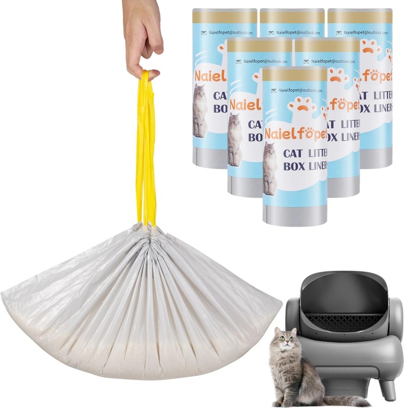 Keep your litter box fresh and clean with these convenient Cat Litter Box Liner Bags from Naielfopet. These durable 3 mil thick bags are designed to fit the Neakasa M1 Open-Top Self Cleaning Cat Litter Box, measuring 27" x 13". Simply line your litter box with one of these bags and dispose of the waste easily when it's time for a change. Each pack contains 30 count liners, providing you with a long-lasting supply. With their super thick construction, these liners offer reliable protection against leaks and odors, ensuring a hygienic environment for your feline friend. Maintain a tidy litter area effortlessly with Naielfopet's Cat Litter Box Liner Bags.