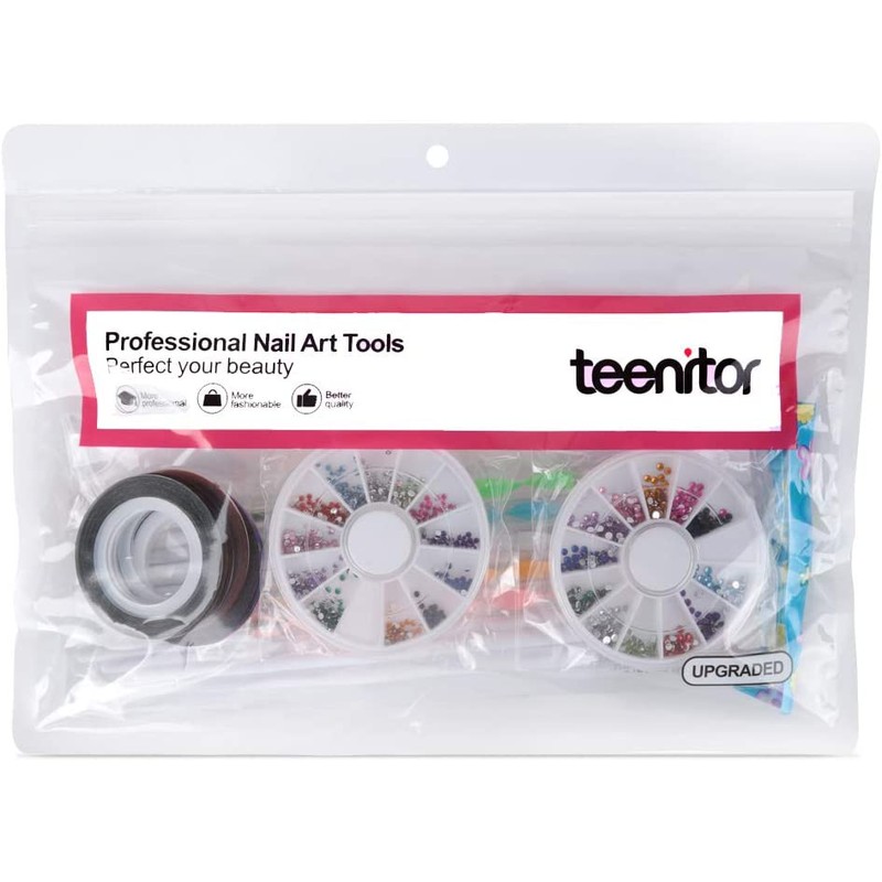 Nail Art Brushes, Teenitor 3D Nail Art Paiting Polish Design Kit with 15 Nail Gel Brushes, Nail Dotting Pen 5pcs, 12 Colors Nail Rinestones & 10 Adhesive Nail Striping Tape for False Acrylic Nails by Teenitor Store
