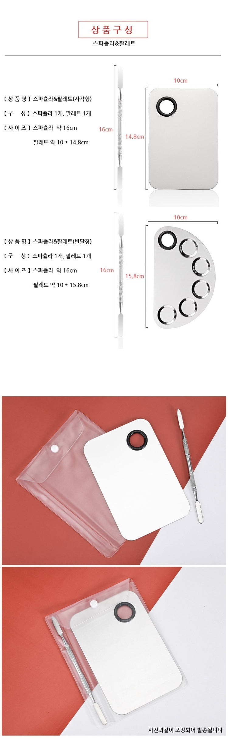 네일아트 믹싱팔레트 및 스파츌라 세트 2종 반달 사각 - 스파츌라팔레트S-사각