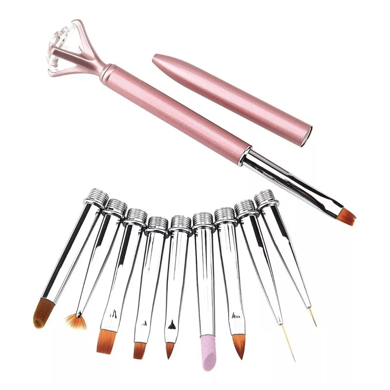 Nail Art Pincel Diamante Con Puntas Intercambiables Uñas Esculpidas