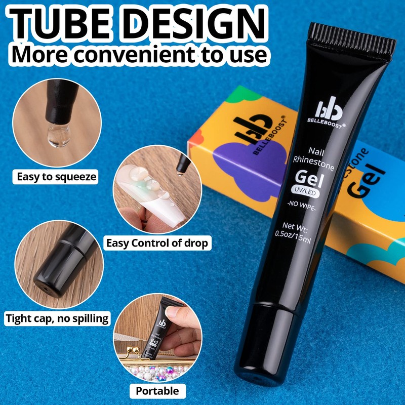 - đNO WIPE TUBE DESIGN GLUE: For your better experience for nail art decoration, the tube glue gel is very easy to squeeze and dot directly to the place you want to stick gems with no mess. It is easy to control the amout for sticking both big and small stones. This nail glue gel is much easier to carry and store with no leakage.