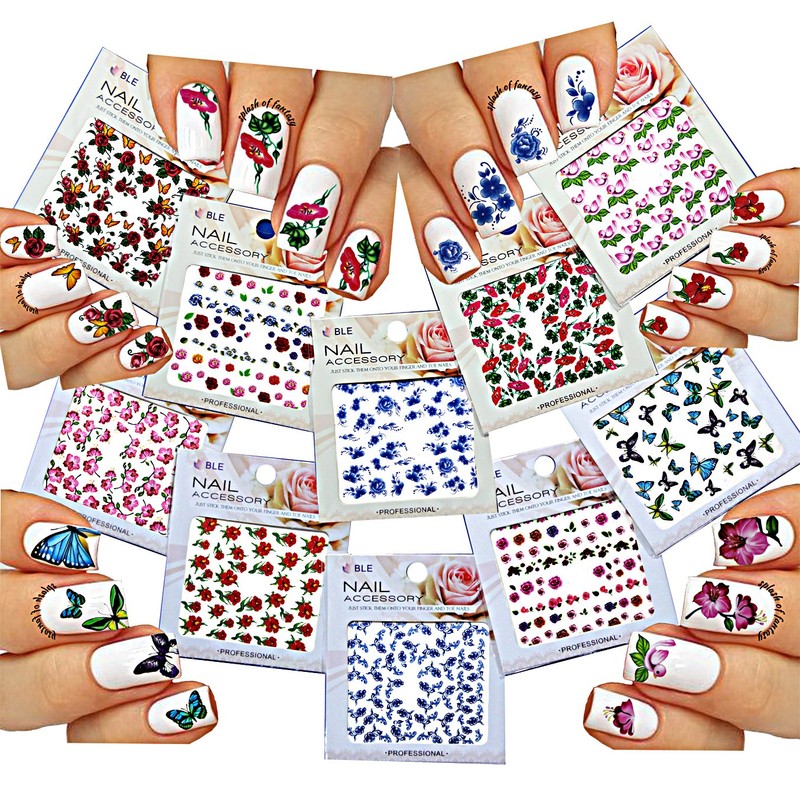 Nail Art Water Slide Tattoo Stickers Decals Flowers Butterflies Birds 10 - Pack/IM-III-I/
